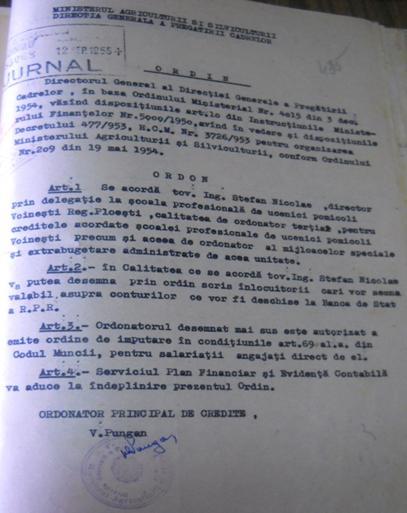 La începutul lunii martie 1955, domnul profesor dr. Nicolae Ştefan, la îndemnul domnului profesor universitar dr. Traian Săvulescu, Directorul General al I.C.A.R. – ului şi Preşedinte al Academiei Române, savant de talie internaţională în fitopatologie, devenea director la Staţiunea Experimentală Pomicolă Voineşti. Una din acţiunile pe care acesta le va propune colegilor cercetători, inginerii Moruju Gh., Cvasnâi D., Tudosescu Oprea, Şuta Aurel, Şuta Victoria, Rădulescu C., Pâslaru C., Mateescu N. şi Vintilă Mircea şi pe care au acceptat-o cu entuziasm şi au executat-o a fost înfiinţarea loturilor demonstrative în livezile de măr ale lucrătorilor permanenţi ai Staţiunii, circa 30, la care au participat ca executanţi şi mulţi copii, fete şi băieţi de vârstă şcolară, membri ai familiilor respective, care, aidoma harnicelor albine, munceau la culesul rămurelelor tăiate, curăţau scoarţa trunchiului, văruiau, cu un entuziasm şi voioşie demne de toată lauda.